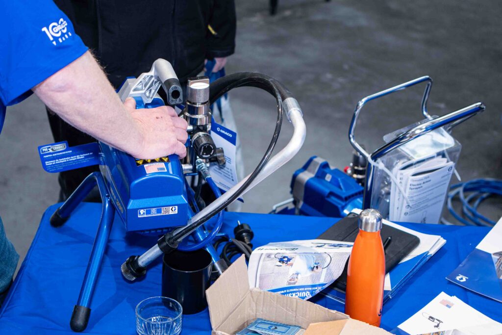 Met maar liefst 19 verschillende standhouders was het aanbod diverser dan ooit. De beursvloer bood een compleet overzicht voor de moderne vakman: van de nieuwste collecties veiligheidsschoenen en duurzame werkkleding tot indrukwekkende rolsteigers die de hoogte van de fabriek volledig benutten.